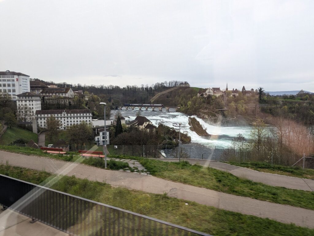 Initially on the way back I wanted to use a sleepers car from ÖBB but due to rescheduling on their side I did not take this ride and instead used a connection with one night in at home in Stuttgart. All in all it was a great trip even with the train issues. Driving back to Switzerland using the direct train from Stuttgart will spoil you with a really great view on the Reinfall if you manage to sit on the right (left) side of the train. Sadly the reflection in the mirror do ruin the shot.