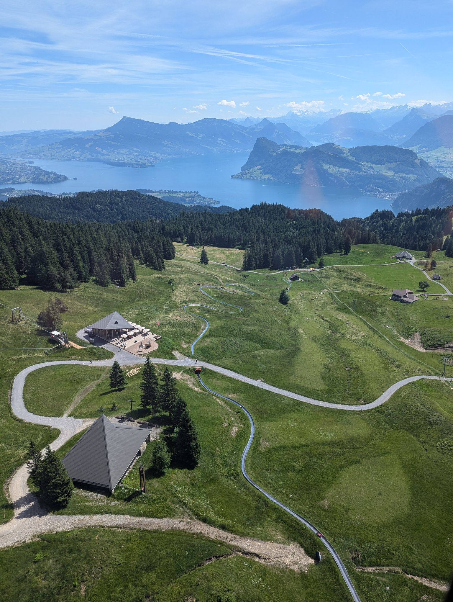 Another activity was going up Mount Pilatus. Here you can do a round trip where you use the aerial lift to go up the mountain and the cog railway to go back down. During our trip up, we went bobsledding on the summer toboggan.