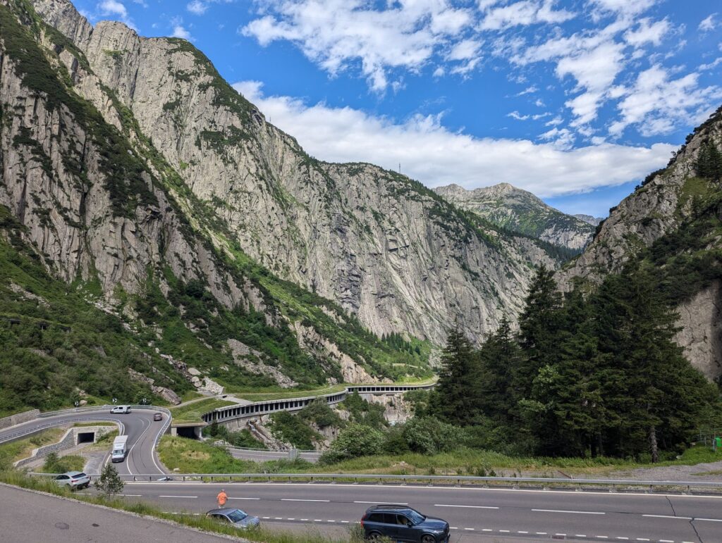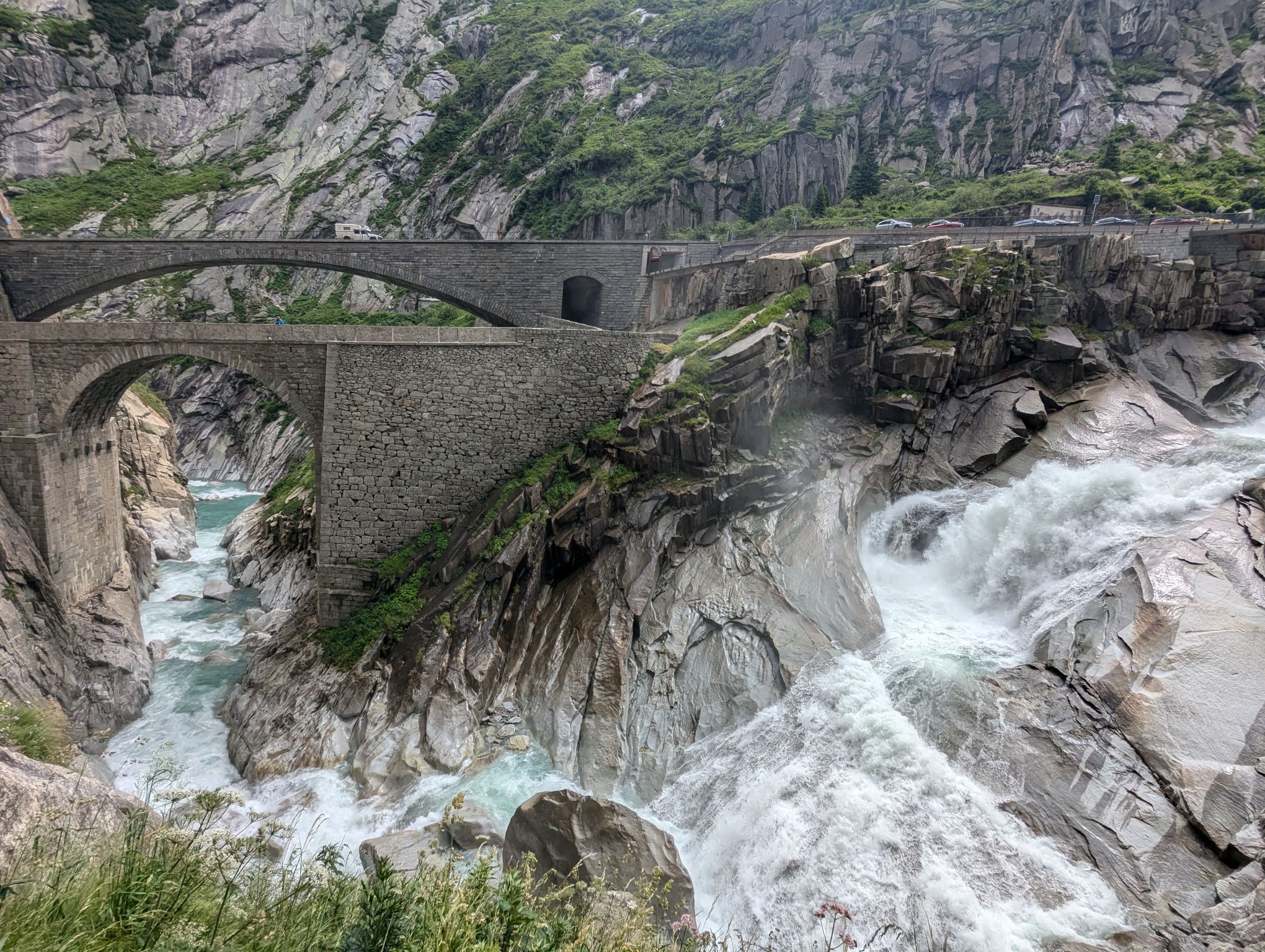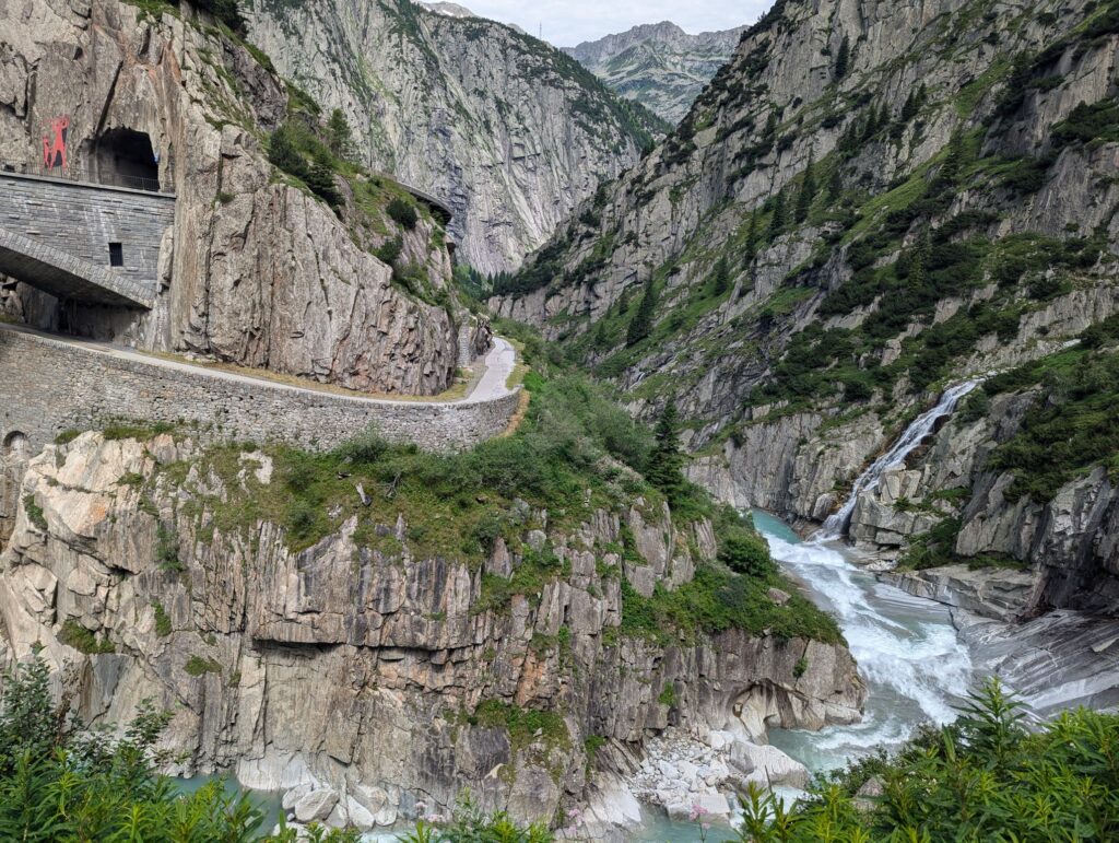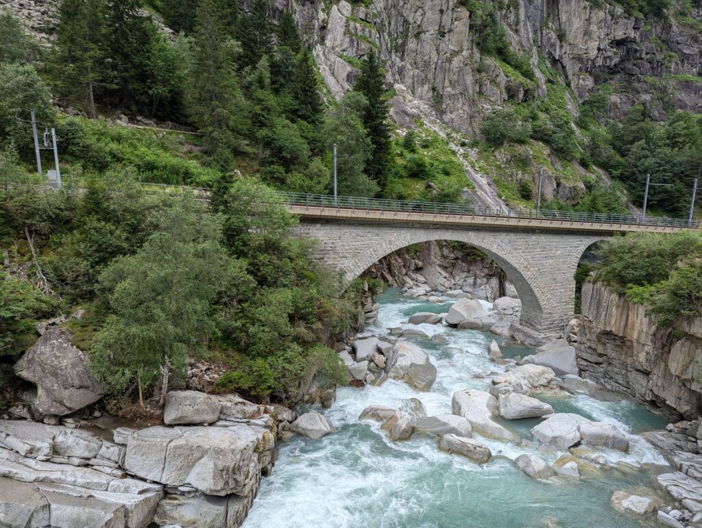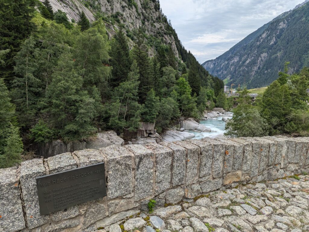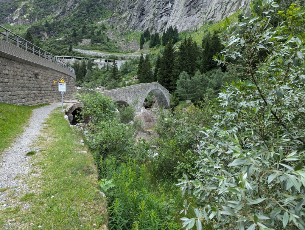 After these visits I wanted to do some hiking and I had my sights set on Andermatt. After checking out the possibilities I realized that I would have to pass through Göschenen to get there and that there was a good and not too difficult hiking trail from Göschenen connecting the two places. So long story short, I packed my bags and took the train to Göschenen. From there you can walk around and get some information about the construction of the Gotthard train tunnel. On my way up the valley I passed several bridges over the Reuss river. One famous bridge I wanted to visit is the Devil’s Bridge. The legend attributes the construction to the Devil because it was so difficult to build.