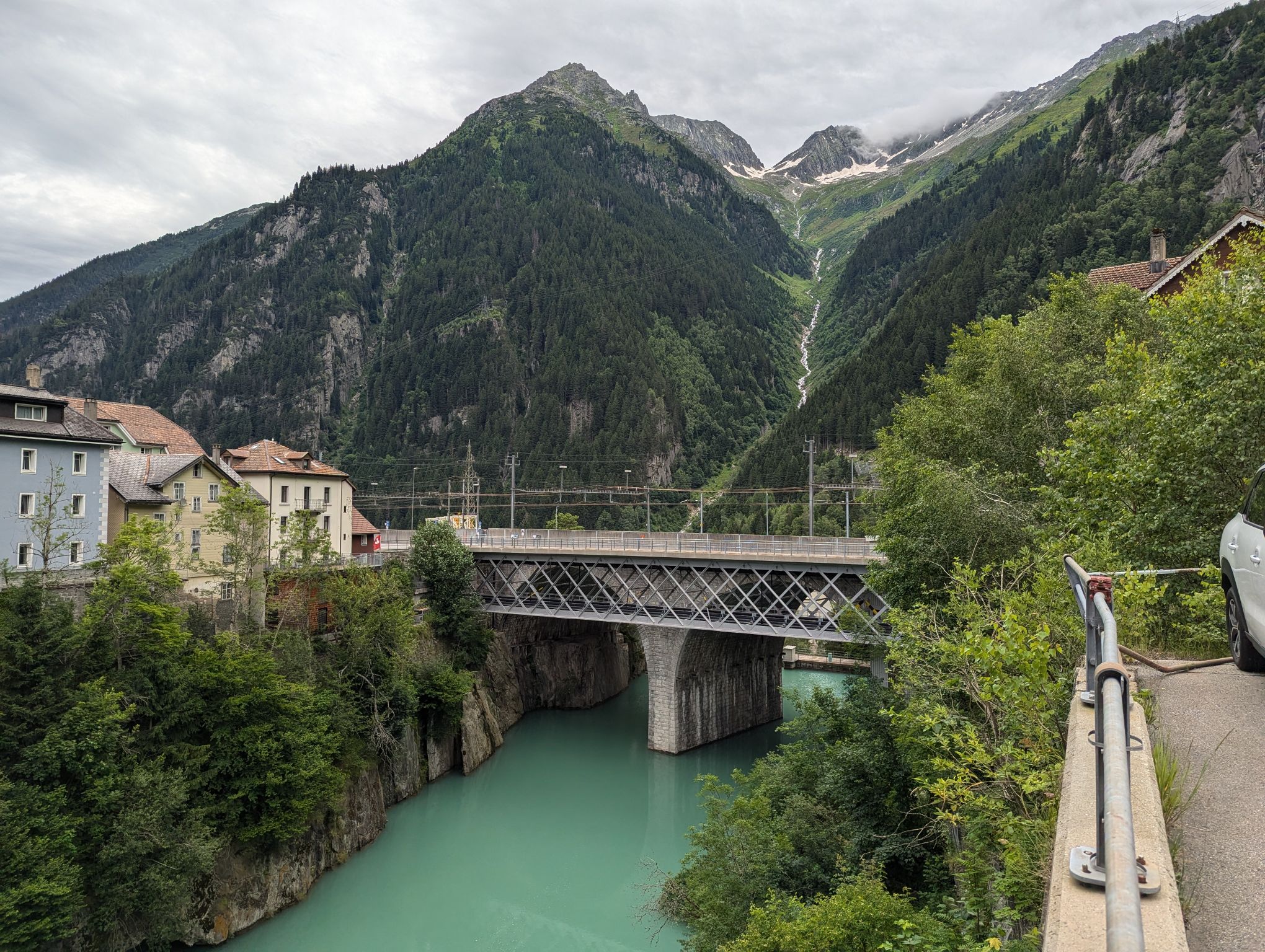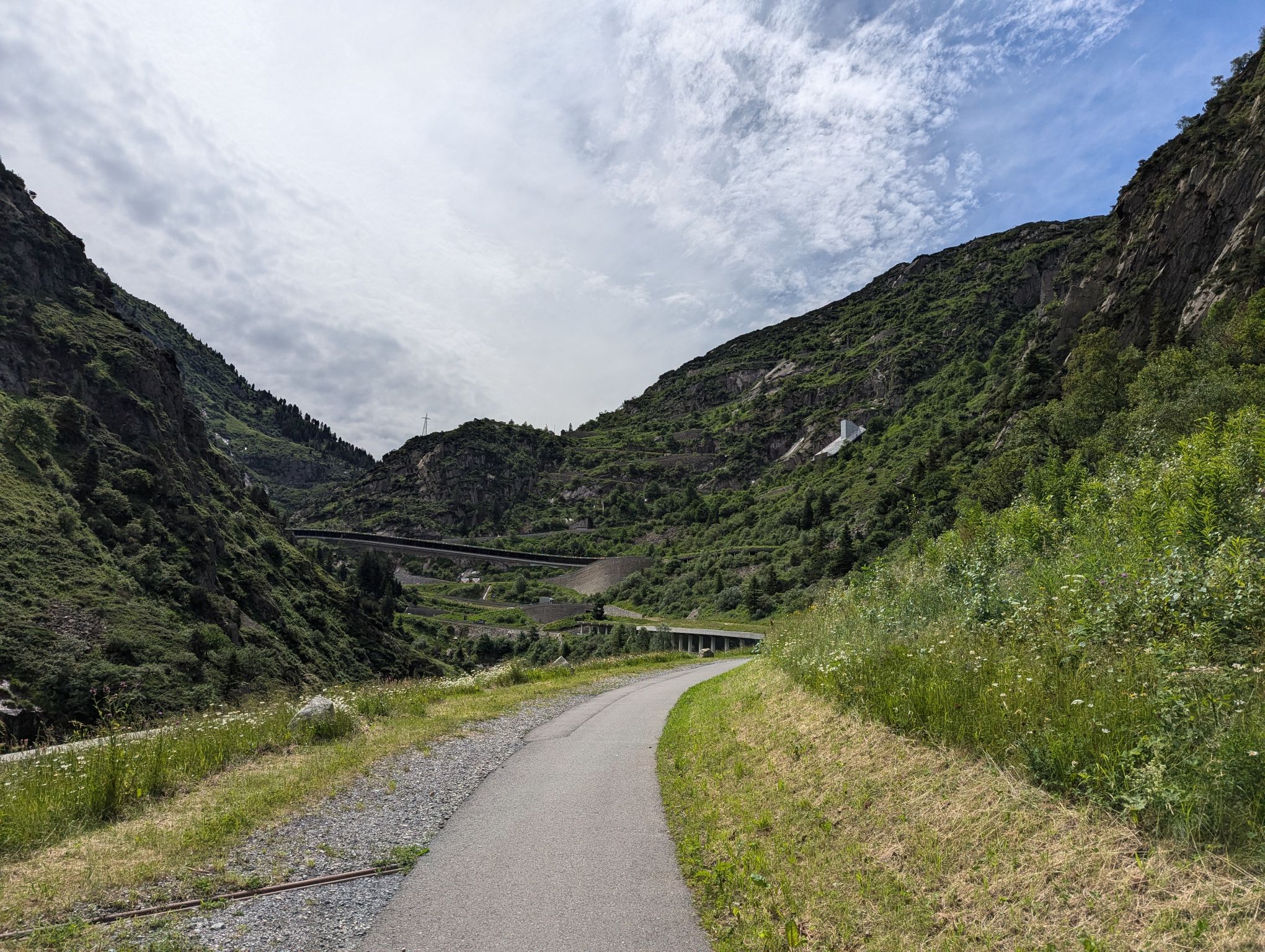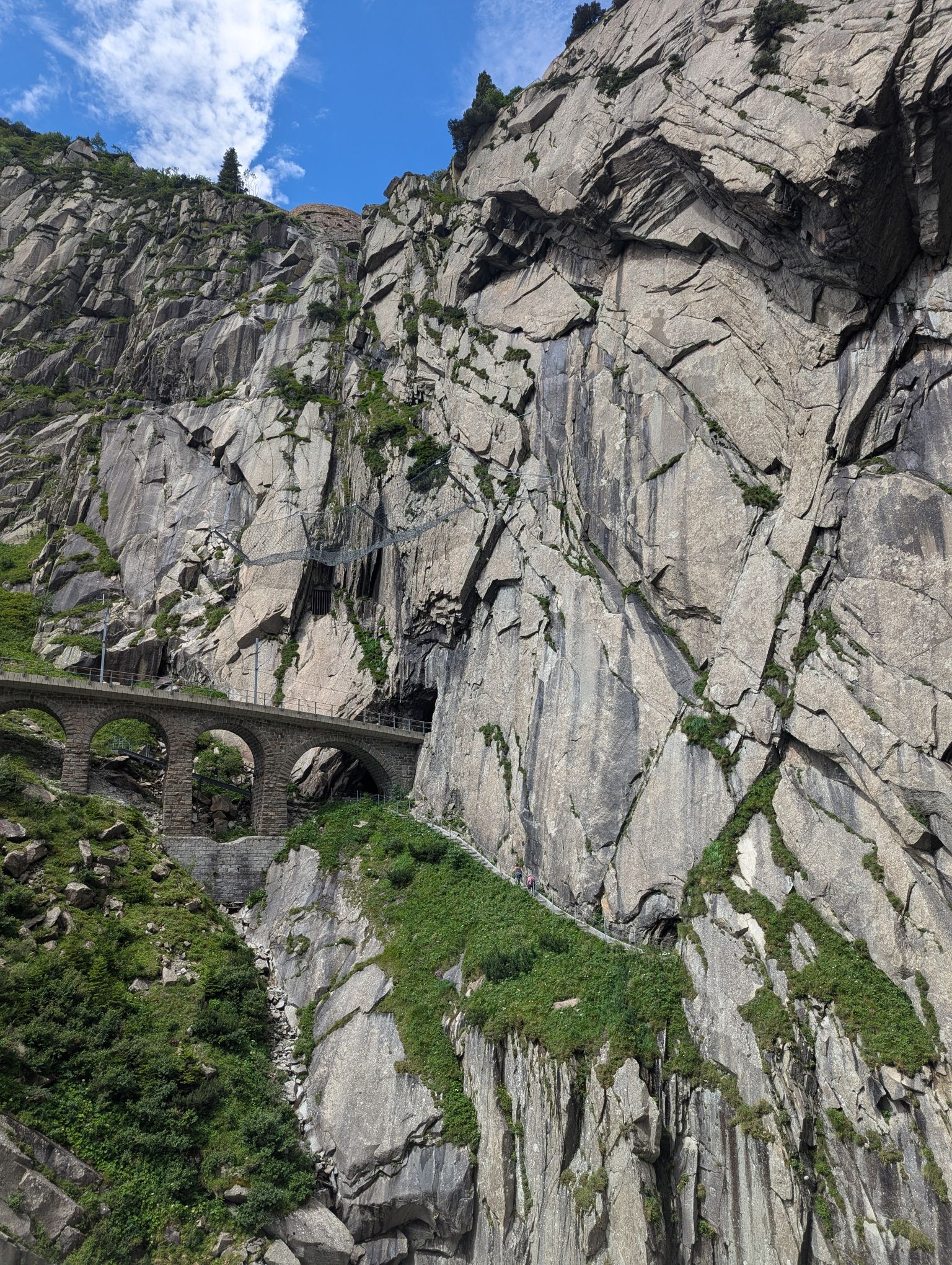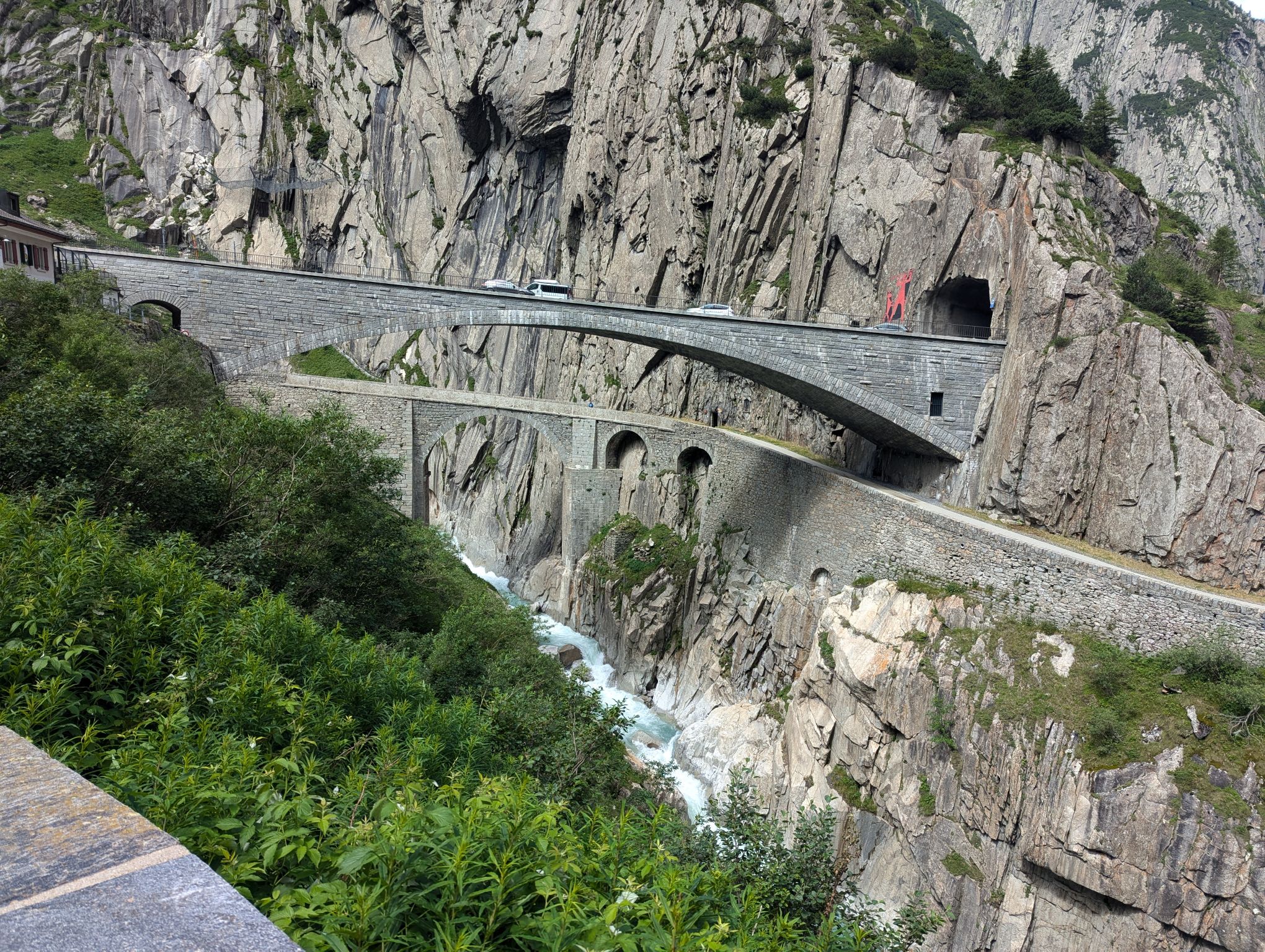 After these visits I wanted to do some hiking and I had my sights set on Andermatt. After checking out the possibilities I realized that I would have to pass through Göschenen to get there and that there was a good and not too difficult hiking trail from Göschenen connecting the two places. So long story short, I packed my bags and took the train to Göschenen. From there you can walk around and get some information about the construction of the Gotthard train tunnel. On my way up the valley I passed several bridges over the Reuss river. One famous bridge I wanted to visit is the Devil’s Bridge. The legend attributes the construction to the Devil because it was so difficult to build.