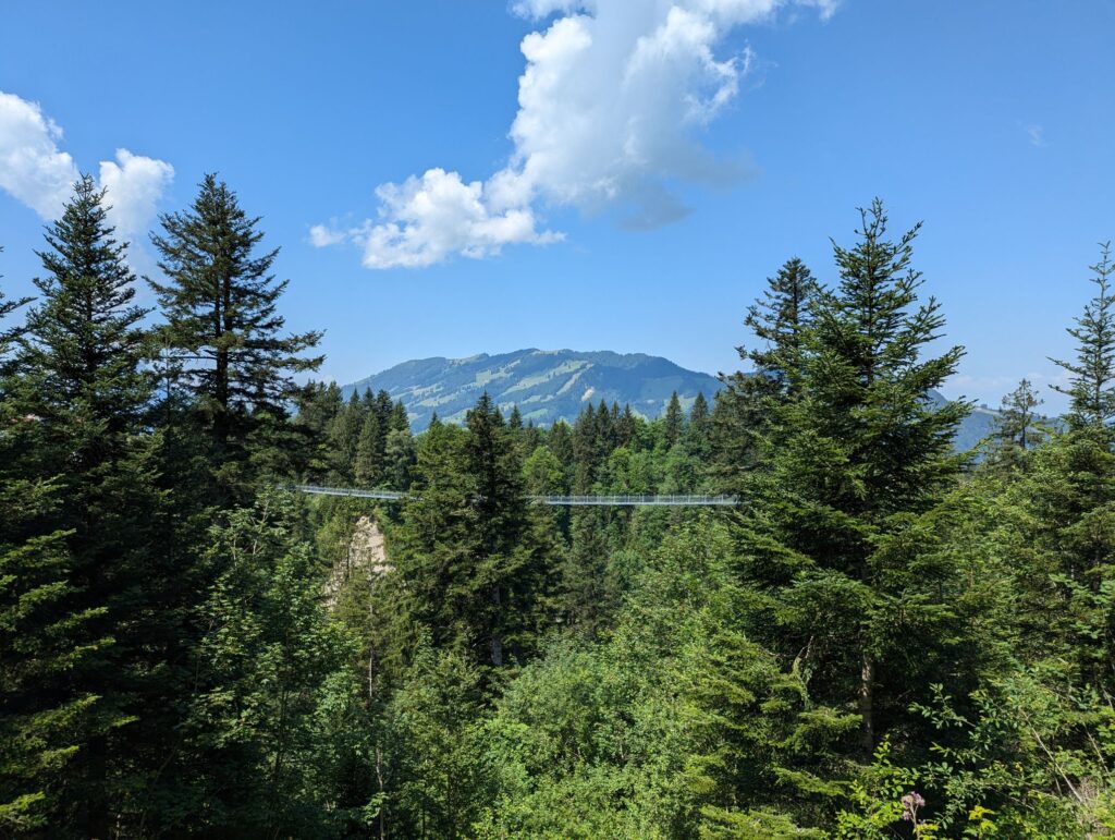 Afterwards we took the areal lift to the top of the mountain. Up there is a family resort for children where families can combine nature, exercise and activities. One of the attractions is a steel wire bridge that spans the nearby valley. Going over the bridge was quite the adventure as it was swaying a lot from all the people on the bridge.