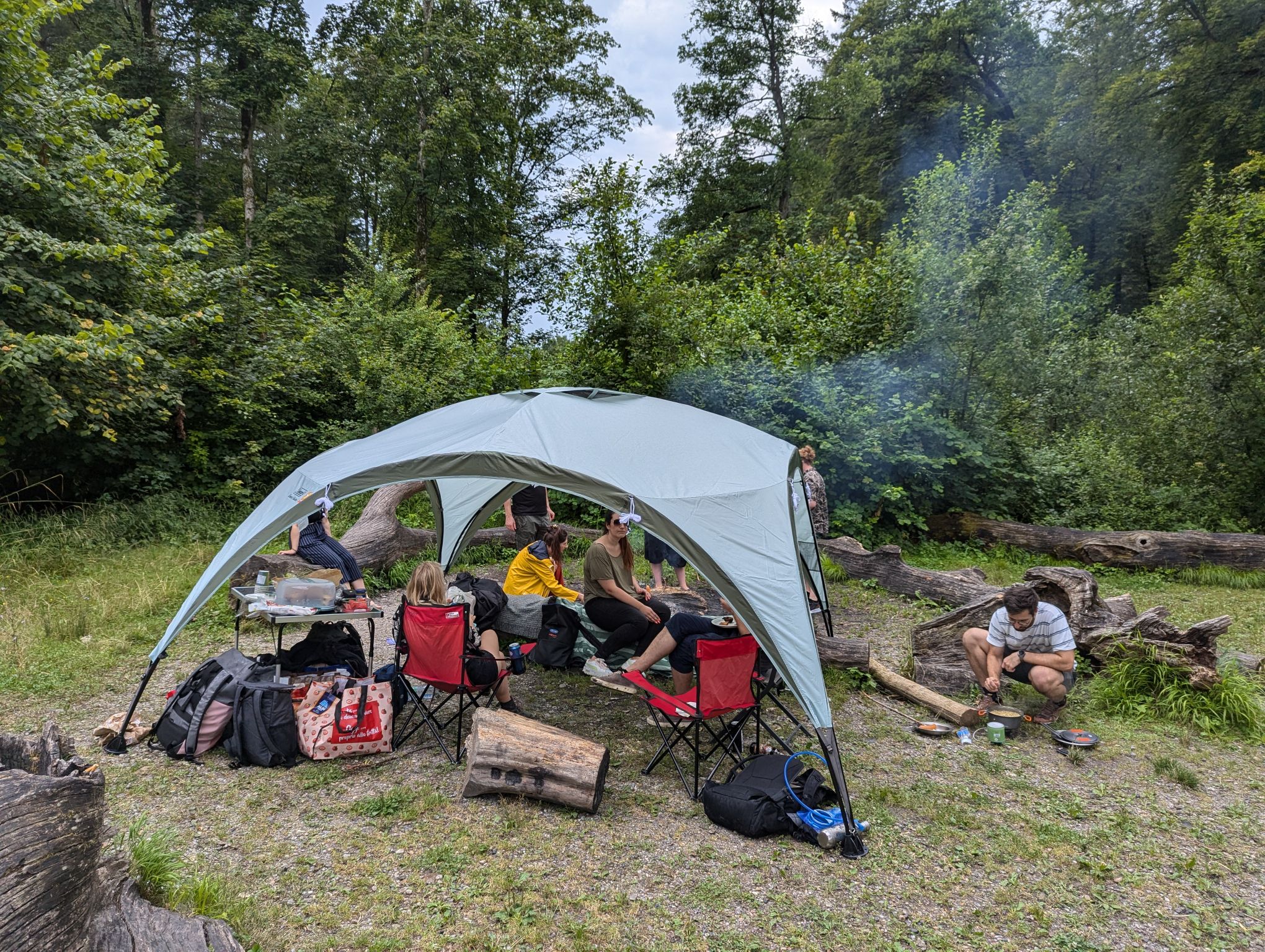 With this last trip completed, the Swiss national holiday was the final event planned to conclude my stay abroad in Switzerland. For this day we decided to have a BBQ in a nearby forest. At first the weather did not look so good and we had some short periods of rain. But luckily my cousin bought a festival tent to keep us dry and protected from the sun.